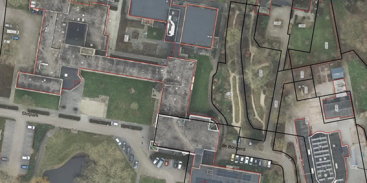 Het perceel waarop Slotpark 1-a-102 staat heeft een oppervlakte van 2,3 ha. Dit is een zeer groot perceel. De perceeloppervlakte wordt geregistreerd door het Kadaster. Gedetailleerde informatie over de maten van dit perceel kunt u vinden in het rapport Kadastrale kaart met maatvoering van Slotpark 1-a-102.