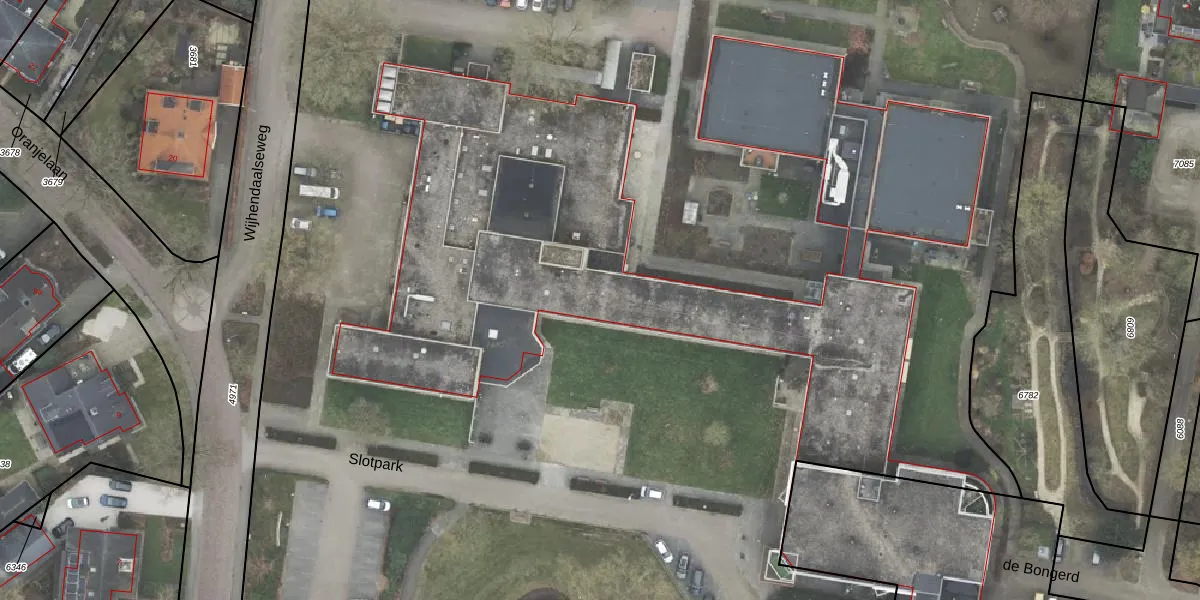 Het perceel waarop Slotpark 1-a-112 staat heeft een oppervlakte van 2,3 ha. Dit is een zeer groot perceel. De perceeloppervlakte wordt geregistreerd door het Kadaster. Gedetailleerde informatie over de maten van dit perceel kunt u vinden in het rapport Kadastrale kaart met maatvoering van Slotpark 1-a-112.