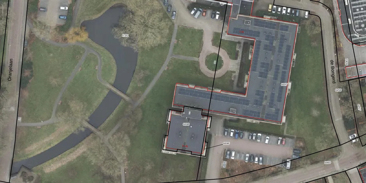 Het perceel waarop Slotpark 42 staat heeft een oppervlakte van 2,3 ha. Dit is een zeer groot perceel. De perceeloppervlakte wordt geregistreerd door het Kadaster. Gedetailleerde informatie over de maten van dit perceel kunt u vinden in het rapport Kadastrale kaart met maatvoering van Slotpark 42.
