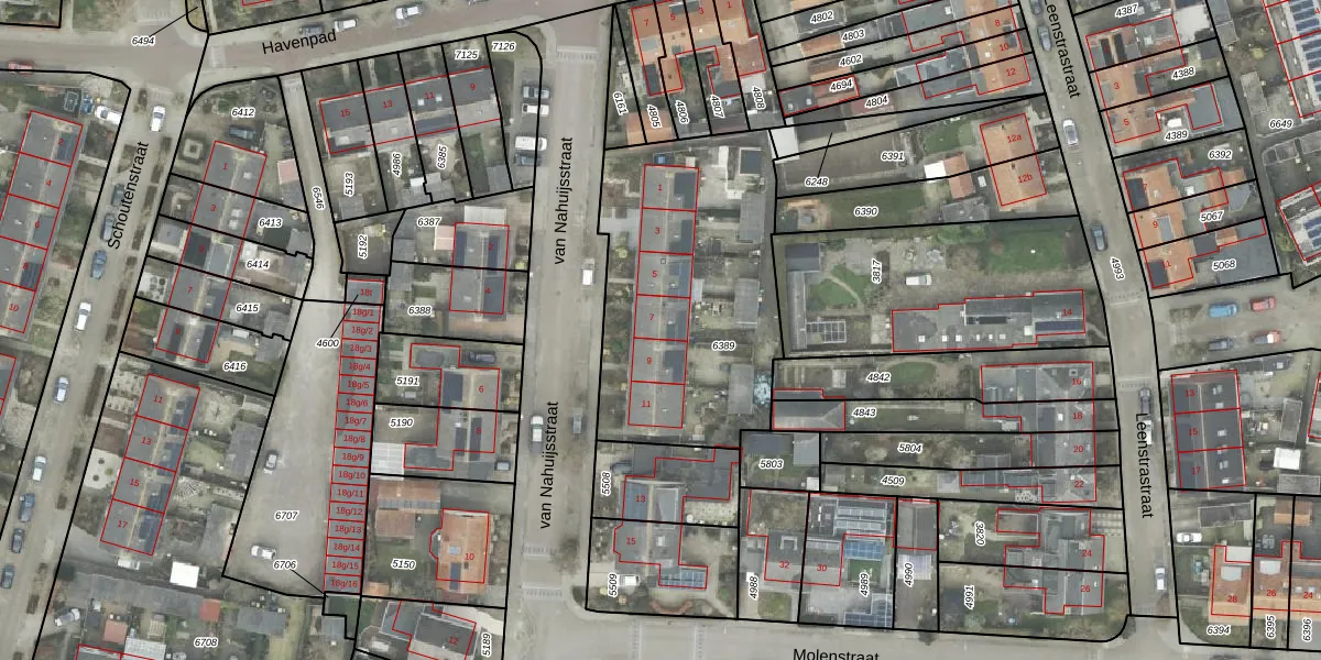 Het perceel waarop van Nahuijsstraat 7 staat heeft een oppervlakte van 1194 m². Dit is een zeer groot perceel. De perceeloppervlakte wordt geregistreerd door het Kadaster. Gedetailleerde informatie over de maten van dit perceel kunt u vinden in het rapport Kadastrale kaart met maatvoering van van Nahuijsstraat 7.