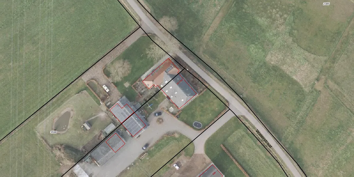 Het perceel waarop Waterstraat 16-a staat heeft een oppervlakte van 9330 m². Dit is een zeer groot perceel. De perceeloppervlakte wordt geregistreerd door het Kadaster. Gedetailleerde informatie over de maten van dit perceel kunt u vinden in het rapport Kadastrale kaart met maatvoering van Waterstraat 16-a.