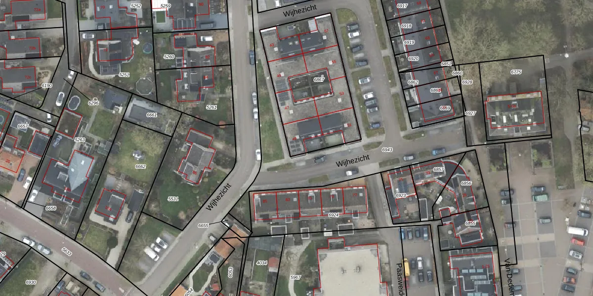 Het perceel waarop Wijhezicht 49 staat heeft een oppervlakte van 1083 m². Dit is een zeer groot perceel. De perceeloppervlakte wordt geregistreerd door het Kadaster. Gedetailleerde informatie over de maten van dit perceel kunt u vinden in het rapport Kadastrale kaart met maatvoering van Wijhezicht 49.