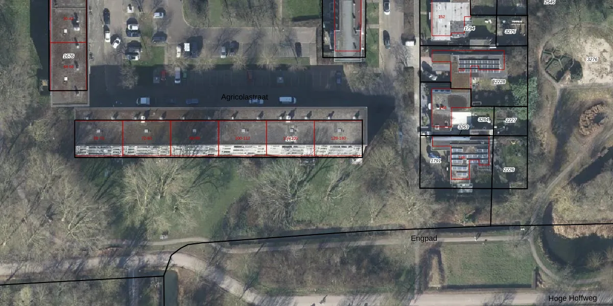 Agricolastraat 114 is gelegen op kadastraal perceel WIJ01E1677. Deze kadastrale aanduiding is uniek en wordt gebruikt door het Kadaster om eigendomsrechten en andere zakelijke rechten vast te leggen. Het perceel maakt onderdeel uit van de kadastrale gemeente Wijk bij Duurstede.