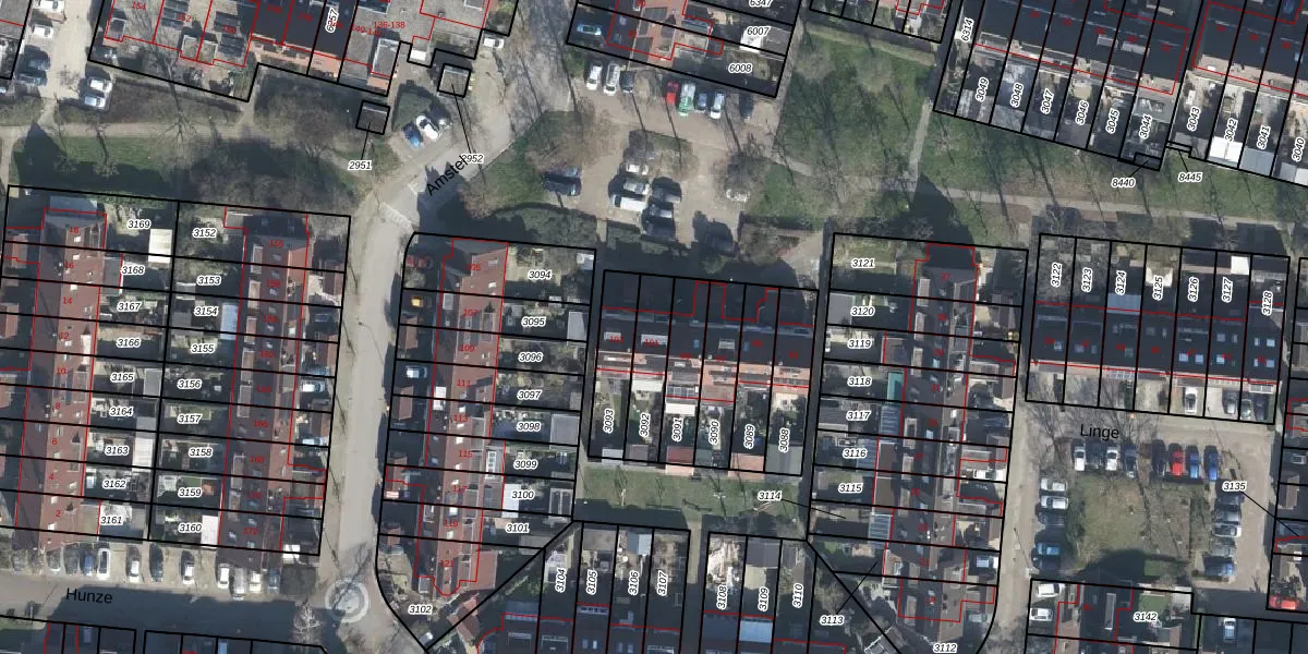 Gebruik de zoekbalk of klik op een perceel voor informatie over de adressen binnen dit perceel.