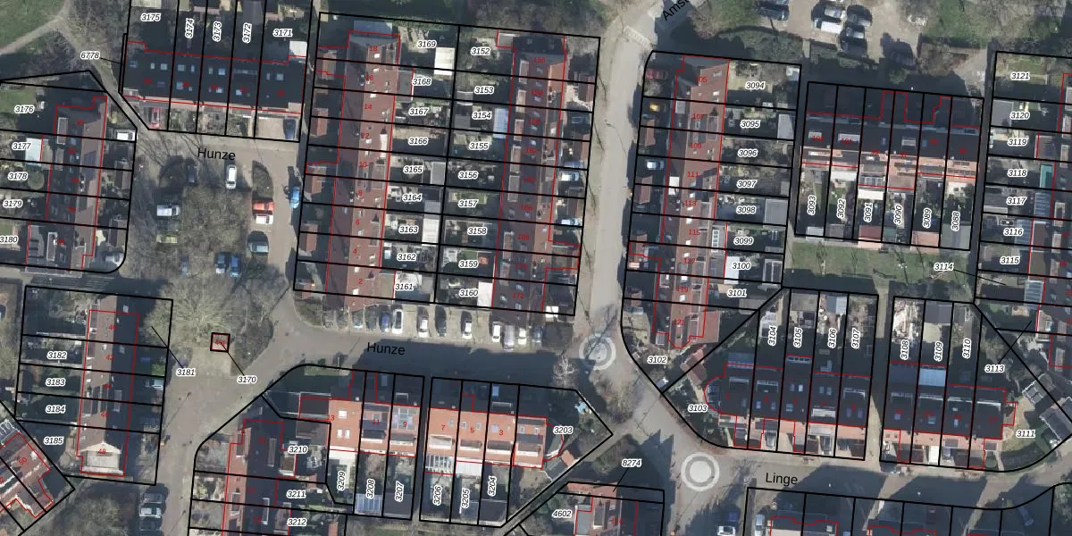 Gebruik de zoekbalk of klik op een perceel voor informatie over de adressen binnen dit perceel.