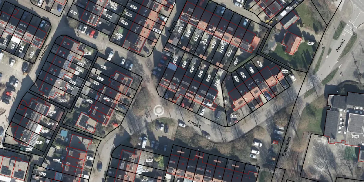 Gebruik de zoekbalk of klik op een perceel voor informatie over de adressen binnen dit perceel.