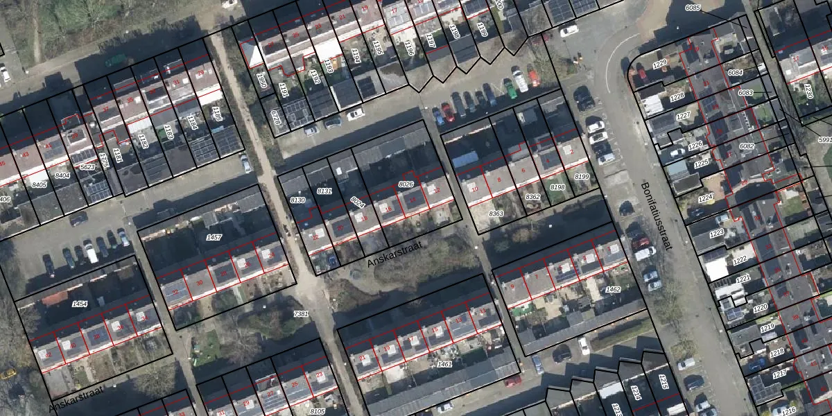 Het perceel waarop Anskarstraat 14 staat heeft een oppervlakte van 484 m². Dit is een groot perceel. De perceeloppervlakte wordt geregistreerd door het Kadaster. Gedetailleerde informatie over de maten van dit perceel kunt u vinden in het rapport Kadastrale kaart met maatvoering van Anskarstraat 14.