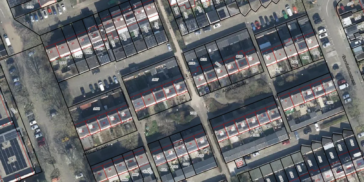 Het perceel waarop Anskarstraat 24 staat heeft een oppervlakte van 811 m². Dit is een groot perceel. De perceeloppervlakte wordt geregistreerd door het Kadaster. Gedetailleerde informatie over de maten van dit perceel kunt u vinden in het rapport Kadastrale kaart met maatvoering van Anskarstraat 24.