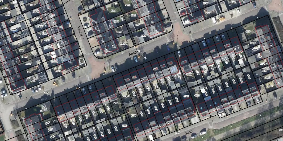 Gebruik de zoekbalk of klik op een perceel voor informatie over de adressen binnen dit perceel.