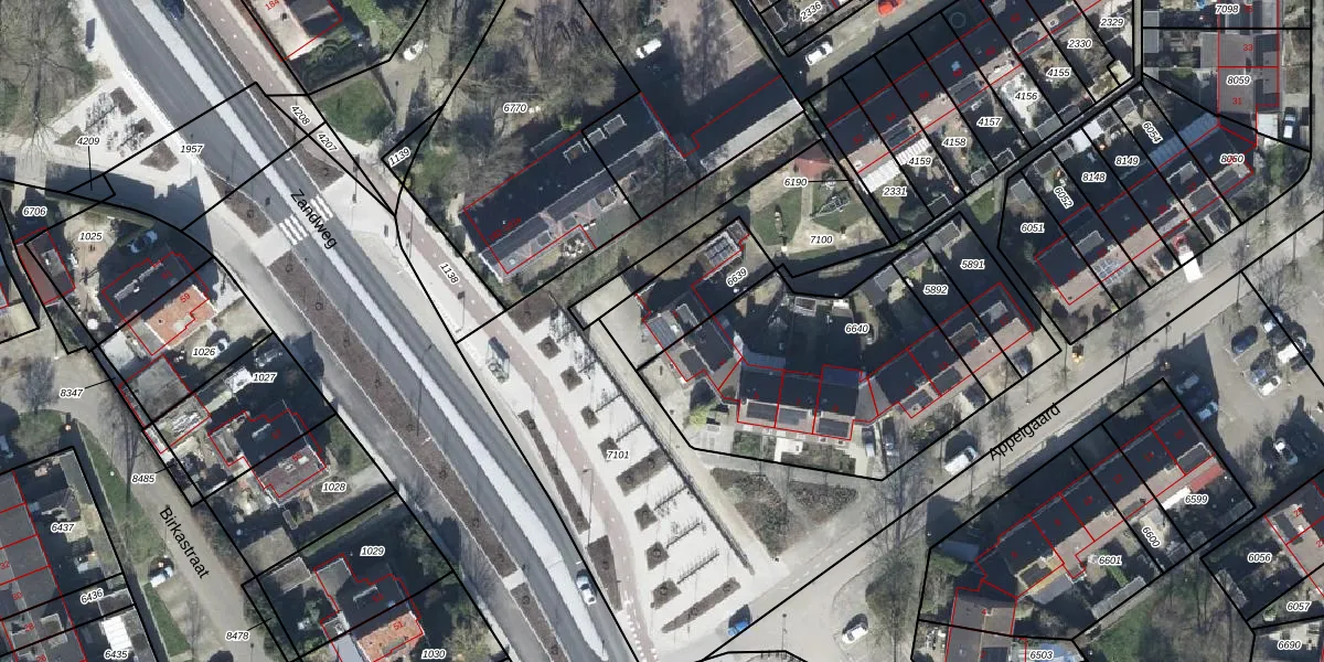 Gebruik de zoekbalk of klik op een perceel voor informatie over de adressen binnen dit perceel.