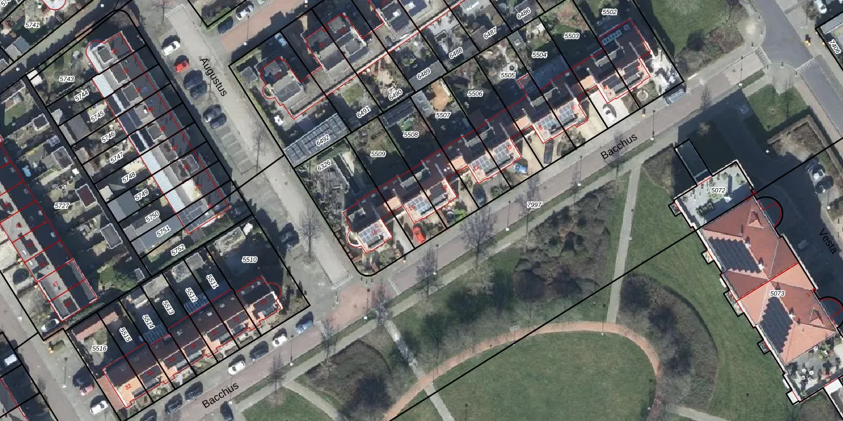 Het perceel waarop Bacchus 16 staat heeft een oppervlakte van 282 m². Dit is een middelgroot perceel. De perceeloppervlakte wordt geregistreerd door het Kadaster. Gedetailleerde informatie over de maten van dit perceel kunt u vinden in het rapport Kadastrale kaart met maatvoering van Bacchus 16.