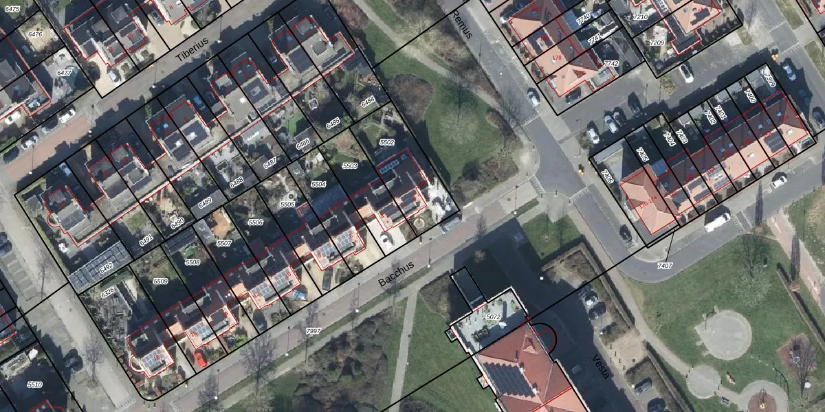 Het perceel waarop Bacchus 2 staat heeft een oppervlakte van 381 m². Dit is een groot perceel. De perceeloppervlakte wordt geregistreerd door het Kadaster. Gedetailleerde informatie over de maten van dit perceel kunt u vinden in het rapport Kadastrale kaart met maatvoering van Bacchus 2.