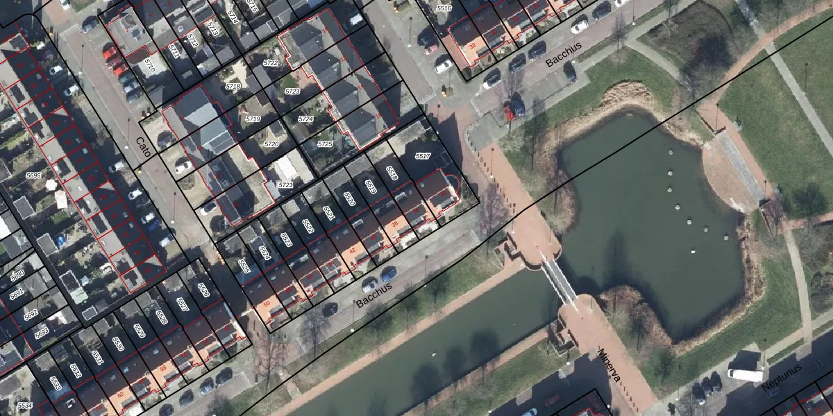 Bacchus 36 is gelegen op kadastraal perceel WIJ01C5518. Deze kadastrale aanduiding is uniek en wordt gebruikt door het Kadaster om eigendomsrechten en andere zakelijke rechten vast te leggen. Het perceel maakt onderdeel uit van de kadastrale gemeente Wijk bij Duurstede.
