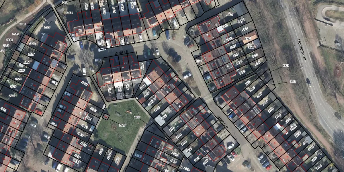 Gebruik de zoekbalk of klik op een perceel voor informatie over de adressen binnen dit perceel.