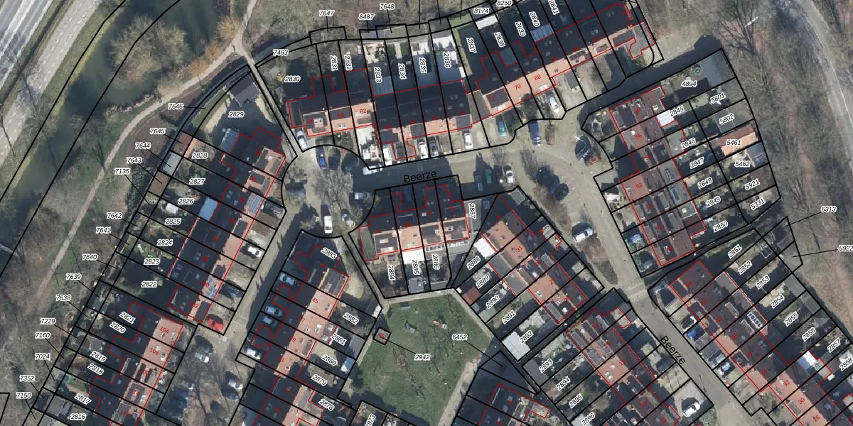 Gebruik de zoekbalk of klik op een perceel voor informatie over de adressen binnen dit perceel.