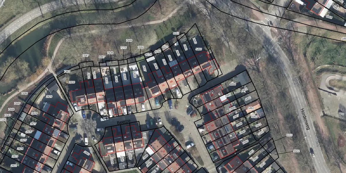 Gebruik de zoekbalk of klik op een perceel voor informatie over de adressen binnen dit perceel.