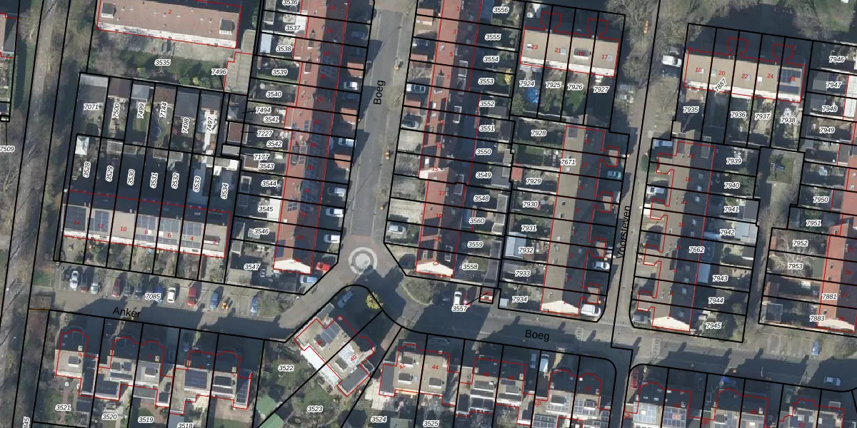 Gebruik de zoekbalk of klik op een perceel voor informatie over de adressen binnen dit perceel.