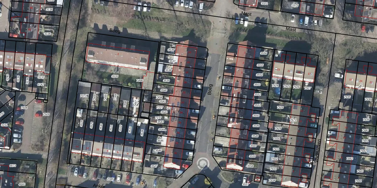 Het perceel waarop Boeg 22 staat heeft een oppervlakte van 142 m². Dit is een middelgroot perceel. De perceeloppervlakte wordt geregistreerd door het Kadaster. Gedetailleerde informatie over de maten van dit perceel kunt u vinden in het rapport Kadastrale kaart met maatvoering van Boeg 22.