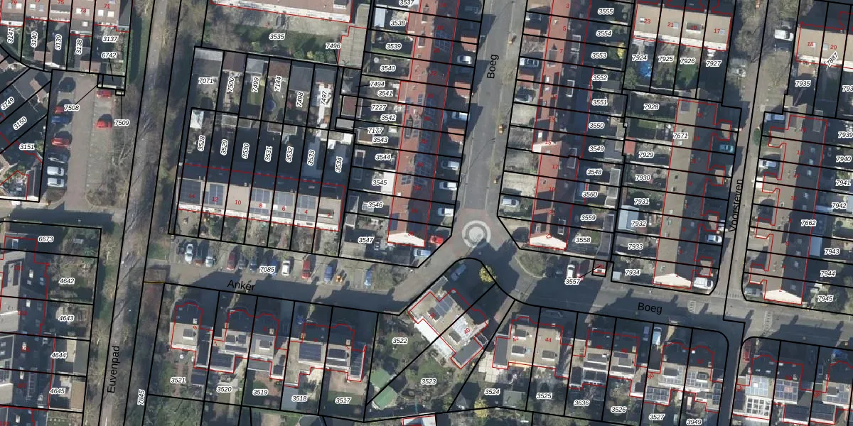 Gebruik de zoekbalk of klik op een perceel voor informatie over de adressen binnen dit perceel.