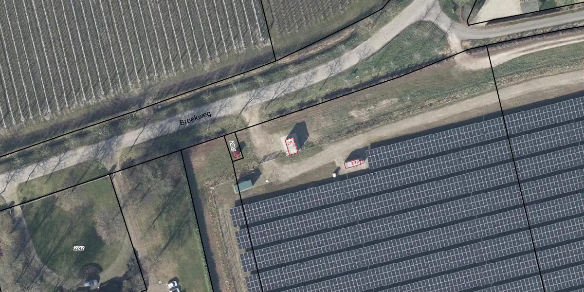 Het perceel waarop Broekweg 2-T1 staat heeft een oppervlakte van 2,0 ha. Dit is een zeer groot perceel. De perceeloppervlakte wordt geregistreerd door het Kadaster. Gedetailleerde informatie over de maten van dit perceel kunt u vinden in het rapport Kadastrale kaart met maatvoering van Broekweg 2-T1.