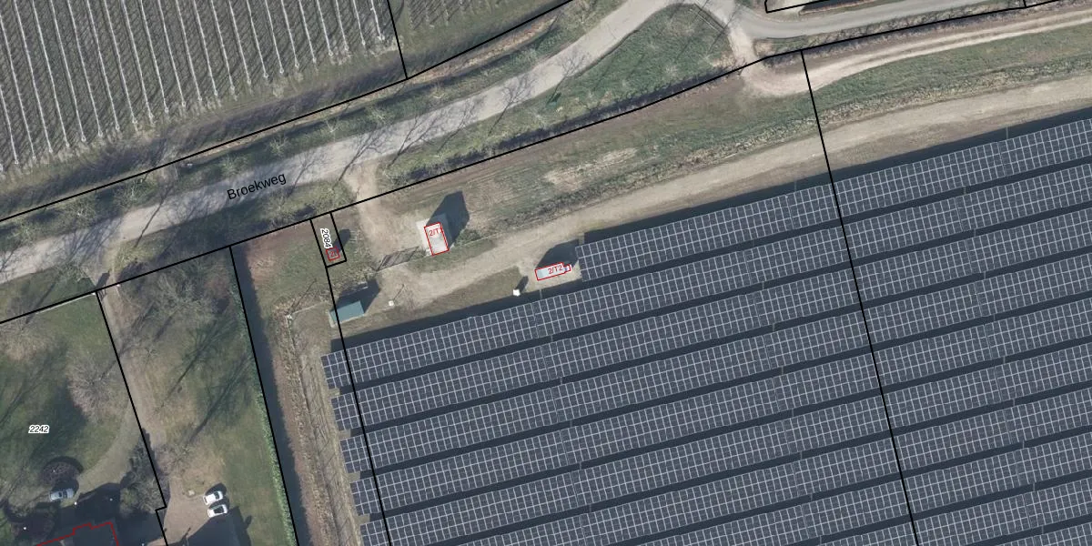 Het perceel waarop Broekweg 2-T2 staat heeft een oppervlakte van 2,0 ha. Dit is een zeer groot perceel. De perceeloppervlakte wordt geregistreerd door het Kadaster. Gedetailleerde informatie over de maten van dit perceel kunt u vinden in het rapport Kadastrale kaart met maatvoering van Broekweg 2-T2.