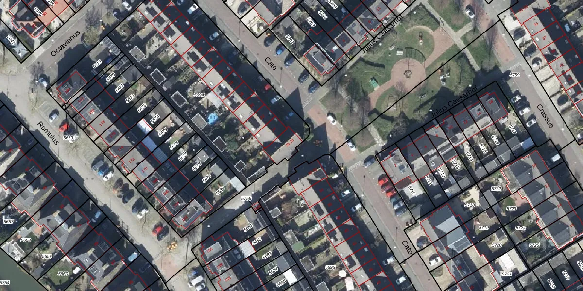 Het perceel waarop Cato 28 staat heeft een oppervlakte van 2146 m². Dit is een zeer groot perceel. De perceeloppervlakte wordt geregistreerd door het Kadaster. Gedetailleerde informatie over de maten van dit perceel kunt u vinden in het rapport Kadastrale kaart met maatvoering van Cato 28.