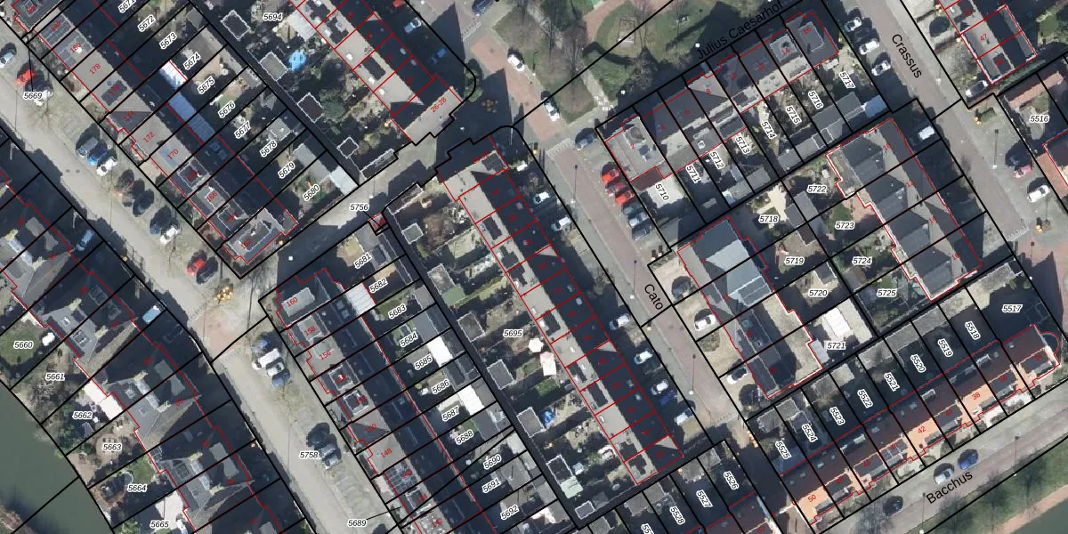 Het perceel waarop Cato 40 staat heeft een oppervlakte van 2133 m². Dit is een zeer groot perceel. De perceeloppervlakte wordt geregistreerd door het Kadaster. Gedetailleerde informatie over de maten van dit perceel kunt u vinden in het rapport Kadastrale kaart met maatvoering van Cato 40.
