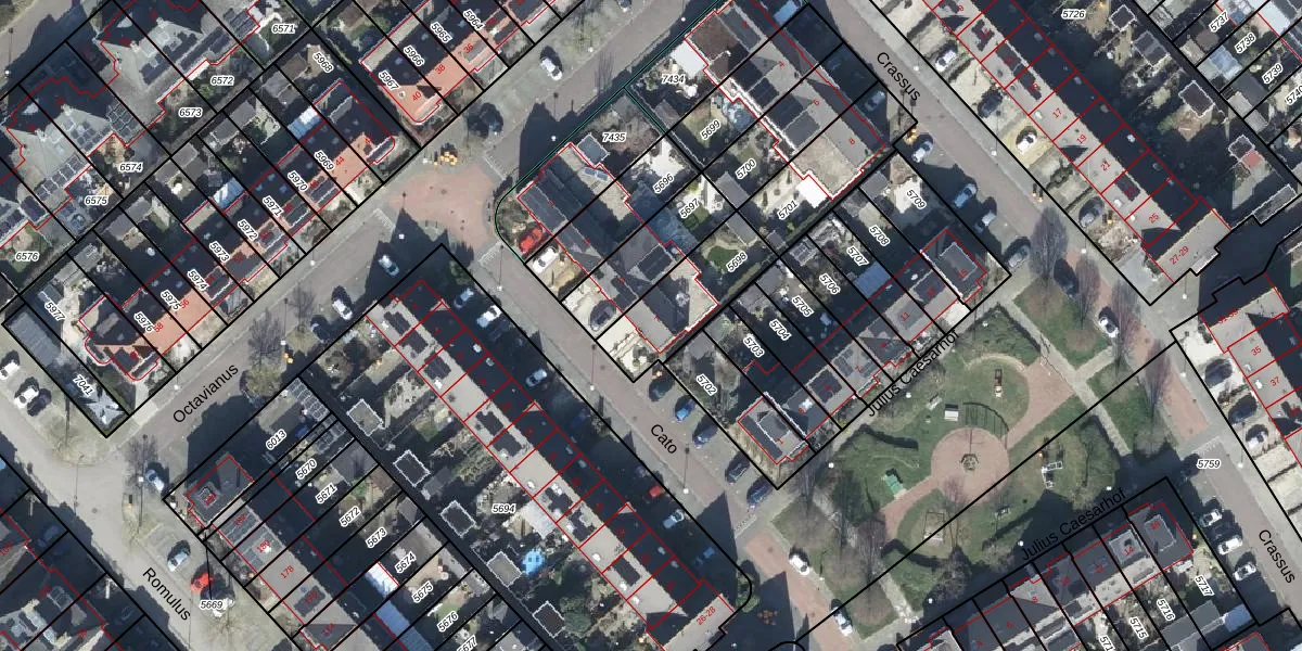 Het perceel waarop Cato 7 staat heeft een oppervlakte van 282 m². Dit is een middelgroot perceel. De perceeloppervlakte wordt geregistreerd door het Kadaster. Gedetailleerde informatie over de maten van dit perceel kunt u vinden in het rapport Kadastrale kaart met maatvoering van Cato 7.