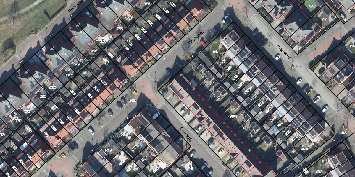 Het perceel waarop Crassus 1 staat heeft een oppervlakte van 2428 m². Dit is een zeer groot perceel. De perceeloppervlakte wordt geregistreerd door het Kadaster. Gedetailleerde informatie over de maten van dit perceel kunt u vinden in het rapport Kadastrale kaart met maatvoering van Crassus 1.