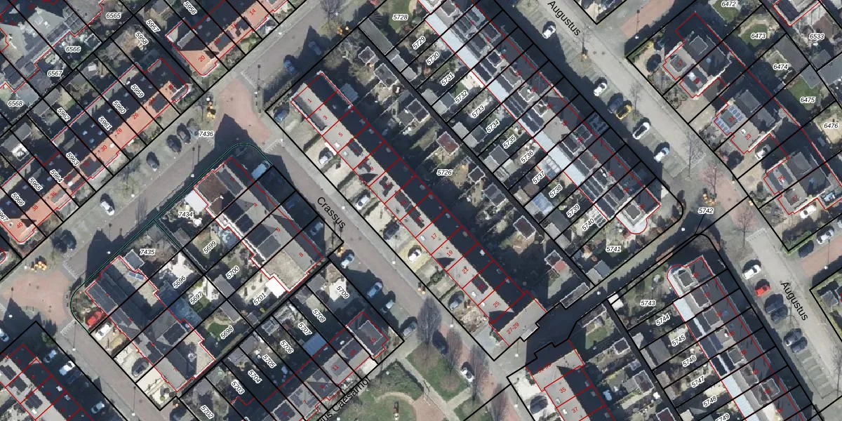 Het perceel waarop Crassus 15 staat heeft een oppervlakte van 2428 m². Dit is een zeer groot perceel. De perceeloppervlakte wordt geregistreerd door het Kadaster. Gedetailleerde informatie over de maten van dit perceel kunt u vinden in het rapport Kadastrale kaart met maatvoering van Crassus 15.
