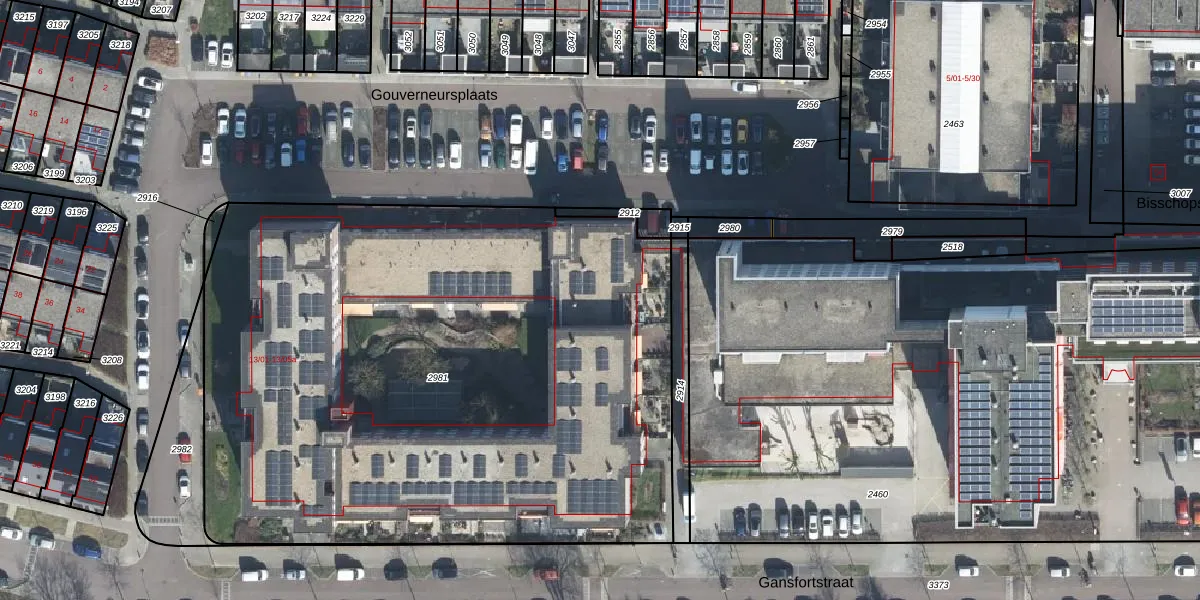 Het perceel waarop Dirk Fockstraat 13-43 staat heeft een oppervlakte van 4311 m². Dit is een zeer groot perceel. De perceeloppervlakte wordt geregistreerd door het Kadaster. Gedetailleerde informatie over de maten van dit perceel kunt u vinden in het rapport Kadastrale kaart met maatvoering van Dirk Fockstraat 13-43.