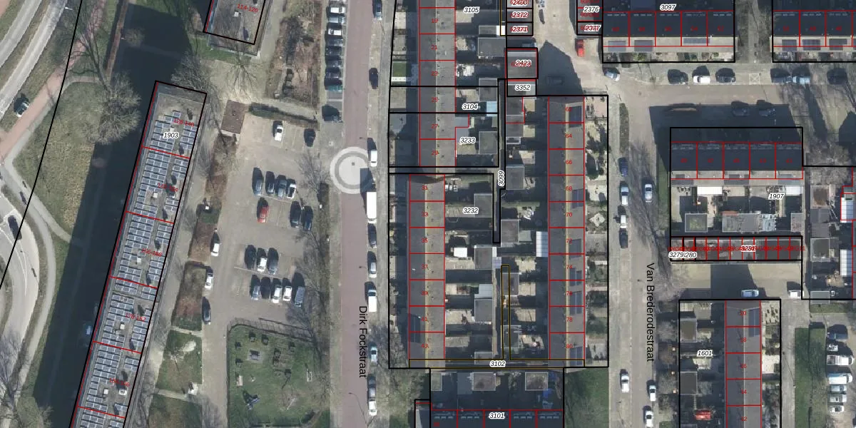 Het perceel waarop Dirk Fockstraat 33 staat heeft een oppervlakte van 2615 m². Dit is een zeer groot perceel. De perceeloppervlakte wordt geregistreerd door het Kadaster. Gedetailleerde informatie over de maten van dit perceel kunt u vinden in het rapport Kadastrale kaart met maatvoering van Dirk Fockstraat 33.