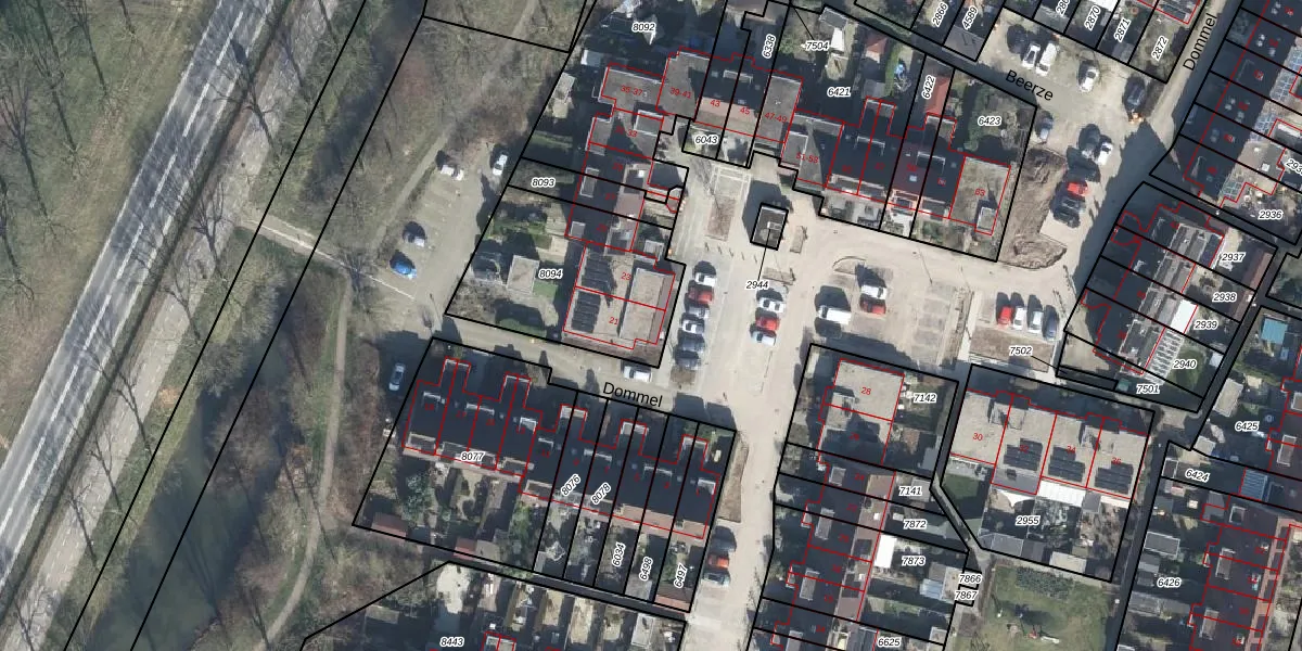 Het perceel waarop Dommel 21 staat heeft een oppervlakte van 659 m². Dit is een groot perceel. De perceeloppervlakte wordt geregistreerd door het Kadaster. Gedetailleerde informatie over de maten van dit perceel kunt u vinden in het rapport Kadastrale kaart met maatvoering van Dommel 21.