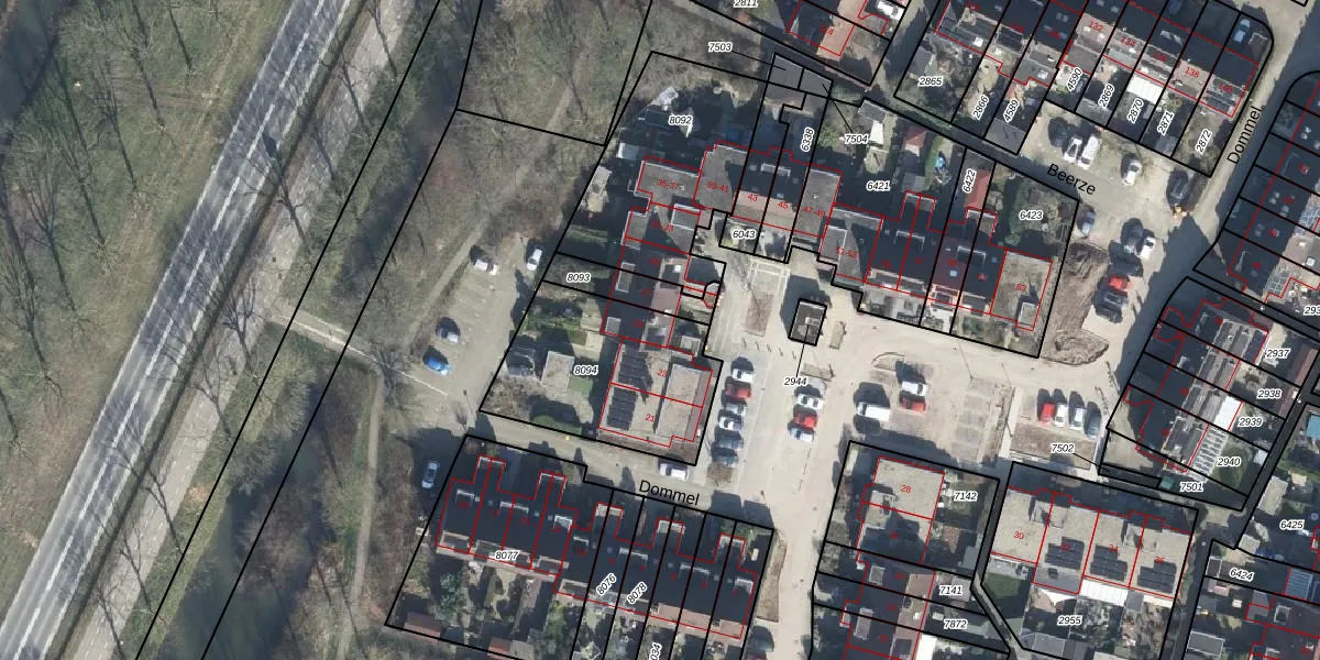 Het perceel waarop Dommel 25 staat heeft een oppervlakte van 659 m². Dit is een groot perceel. De perceeloppervlakte wordt geregistreerd door het Kadaster. Gedetailleerde informatie over de maten van dit perceel kunt u vinden in het rapport Kadastrale kaart met maatvoering van Dommel 25.