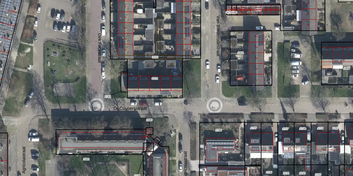 Het perceel waarop Dr Cuypersstraat 22 staat heeft een oppervlakte van 695 m². Dit is een groot perceel. De perceeloppervlakte wordt geregistreerd door het Kadaster. Gedetailleerde informatie over de maten van dit perceel kunt u vinden in het rapport Kadastrale kaart met maatvoering van Dr Cuypersstraat 22.