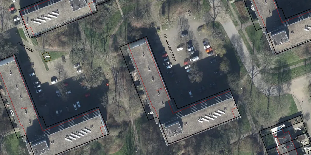 Het perceel waarop Dr Janssenstraat 32 staat heeft een oppervlakte van 1910 m². Dit is een zeer groot perceel. De perceeloppervlakte wordt geregistreerd door het Kadaster. Gedetailleerde informatie over de maten van dit perceel kunt u vinden in het rapport Kadastrale kaart met maatvoering van Dr Janssenstraat 32.