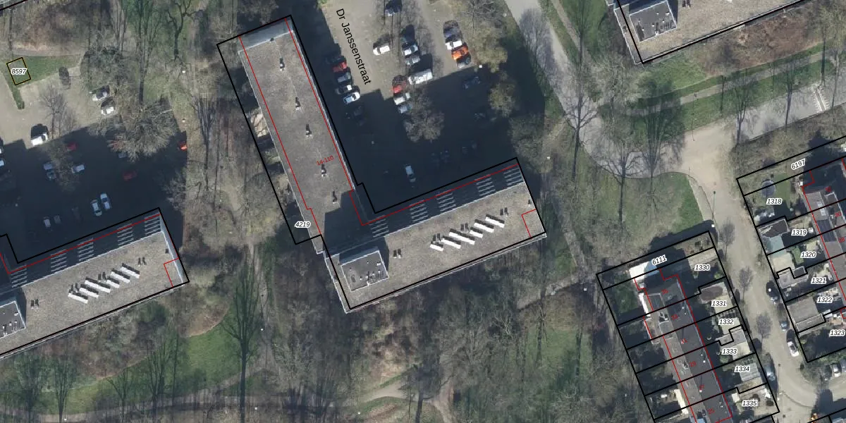 Het perceel waarop Dr Janssenstraat 42 staat heeft een oppervlakte van 1910 m². Dit is een zeer groot perceel. De perceeloppervlakte wordt geregistreerd door het Kadaster. Gedetailleerde informatie over de maten van dit perceel kunt u vinden in het rapport Kadastrale kaart met maatvoering van Dr Janssenstraat 42.