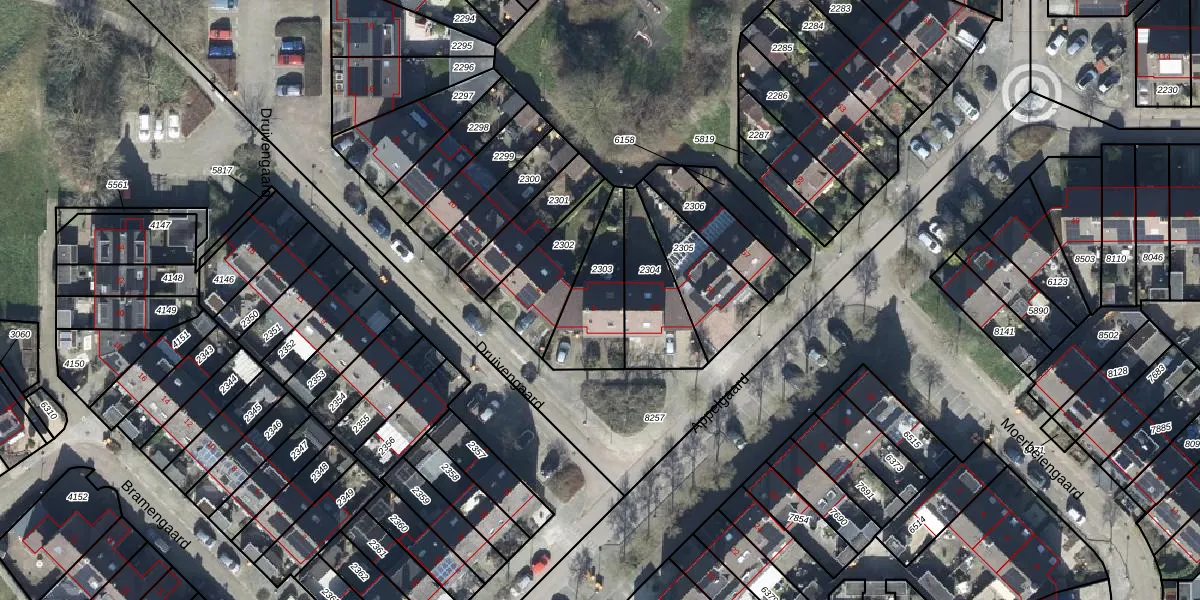Gebruik de zoekbalk of klik op een perceel voor informatie over de adressen binnen dit perceel.