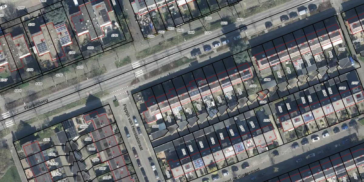 Het perceel waarop Frankenweg 61 staat heeft een oppervlakte van 188 m². Dit is een middelgroot perceel. De perceeloppervlakte wordt geregistreerd door het Kadaster. Gedetailleerde informatie over de maten van dit perceel kunt u vinden in het rapport Kadastrale kaart met maatvoering van Frankenweg 61.