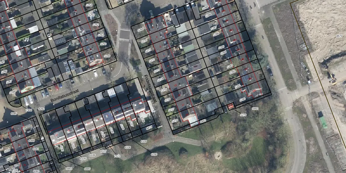 Het perceel waarop Frideburgstraat 13 staat heeft een oppervlakte van 193 m². Dit is een middelgroot perceel. De perceeloppervlakte wordt geregistreerd door het Kadaster. Gedetailleerde informatie over de maten van dit perceel kunt u vinden in het rapport Kadastrale kaart met maatvoering van Frideburgstraat 13.