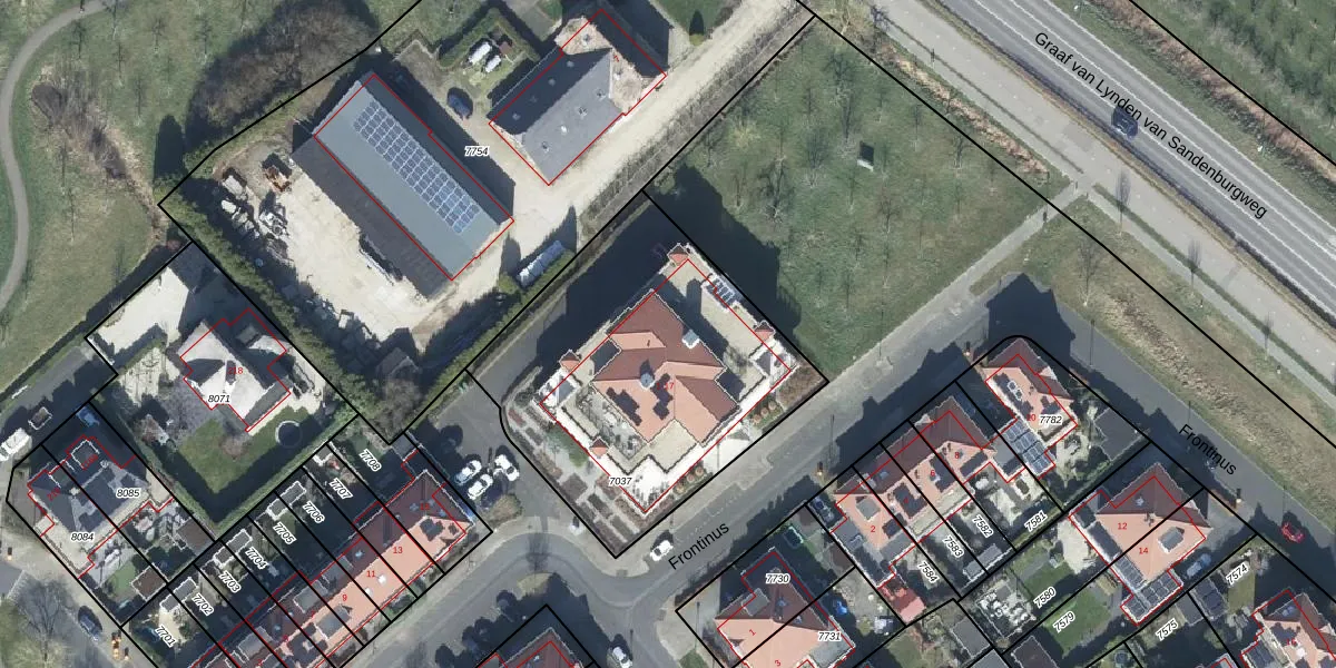 Het perceel waarop Frontinus 9 staat heeft een oppervlakte van 1523 m². Dit is een zeer groot perceel. De perceeloppervlakte wordt geregistreerd door het Kadaster. Gedetailleerde informatie over de maten van dit perceel kunt u vinden in het rapport Kadastrale kaart met maatvoering van Frontinus 9.