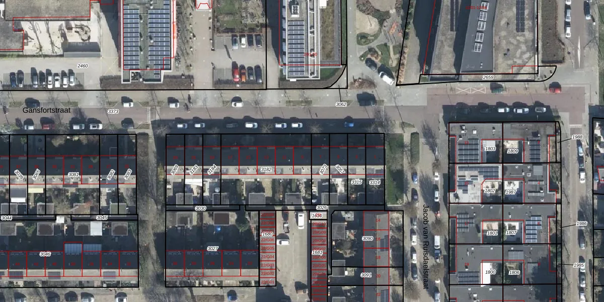 Het perceel waarop Gansfortstraat 9 staat heeft een oppervlakte van 706 m². Dit is een groot perceel. De perceeloppervlakte wordt geregistreerd door het Kadaster. Gedetailleerde informatie over de maten van dit perceel kunt u vinden in het rapport Kadastrale kaart met maatvoering van Gansfortstraat 9.
