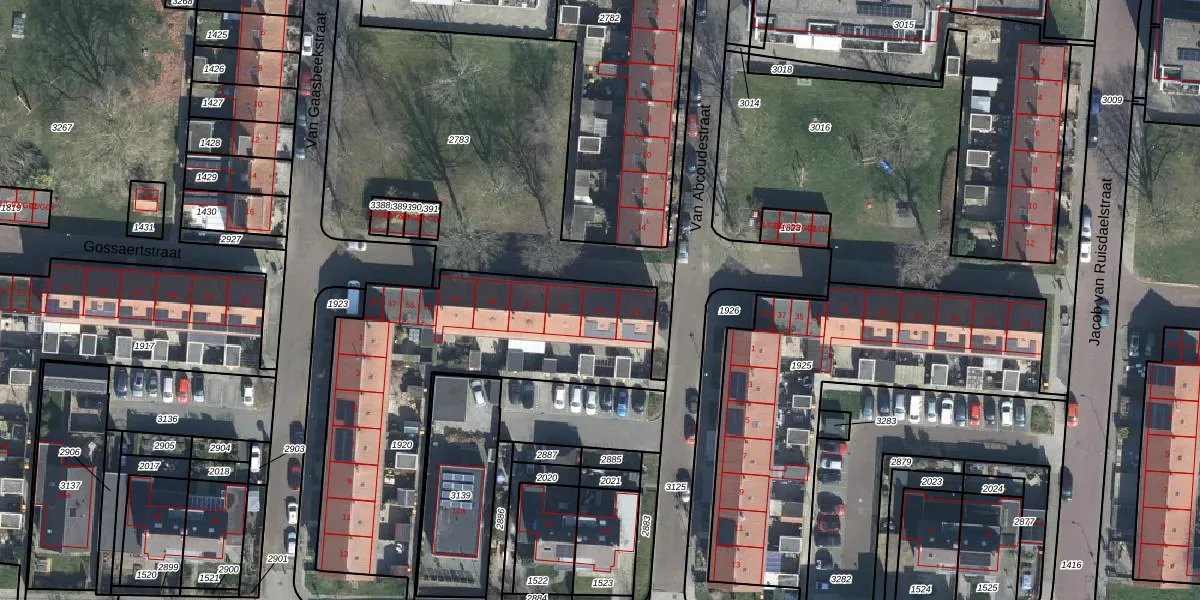 Het perceel waarop Gossaertstraat 43 staat heeft een oppervlakte van 1385 m². Dit is een zeer groot perceel. De perceeloppervlakte wordt geregistreerd door het Kadaster. Gedetailleerde informatie over de maten van dit perceel kunt u vinden in het rapport Kadastrale kaart met maatvoering van Gossaertstraat 43.
