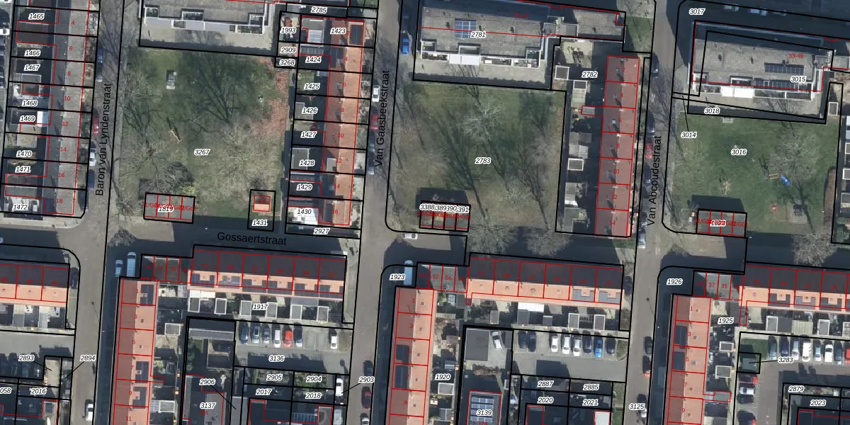 Het perceel waarop Gossaertstraat 51-G04 staat heeft een oppervlakte van 19 m². Dit is een klein perceel. De perceeloppervlakte wordt geregistreerd door het Kadaster. Gedetailleerde informatie over de maten van dit perceel kunt u vinden in het rapport Kadastrale kaart met maatvoering van Gossaertstraat 51-G04.