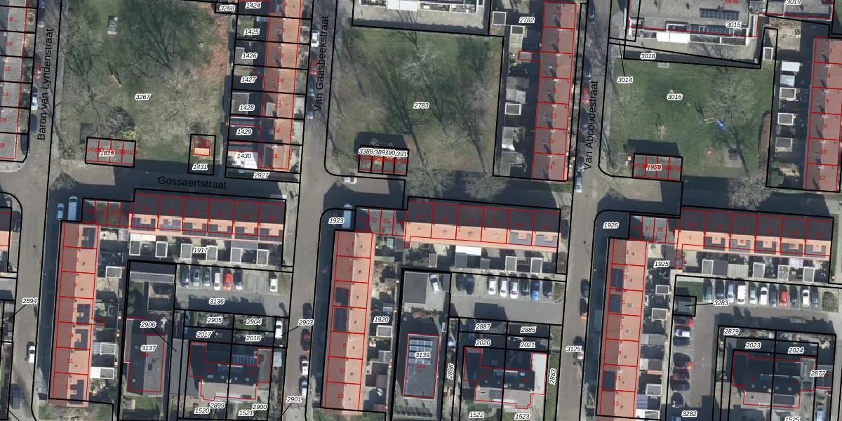 Het perceel waarop Gossaertstraat 51 staat heeft een oppervlakte van 1385 m². Dit is een zeer groot perceel. De perceeloppervlakte wordt geregistreerd door het Kadaster. Gedetailleerde informatie over de maten van dit perceel kunt u vinden in het rapport Kadastrale kaart met maatvoering van Gossaertstraat 51.