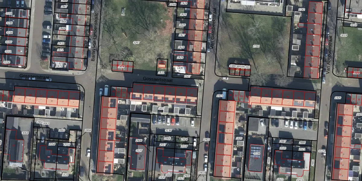 Het perceel waarop Gossaertstraat 63 staat heeft een oppervlakte van 1392 m². Dit is een zeer groot perceel. De perceeloppervlakte wordt geregistreerd door het Kadaster. Gedetailleerde informatie over de maten van dit perceel kunt u vinden in het rapport Kadastrale kaart met maatvoering van Gossaertstraat 63.