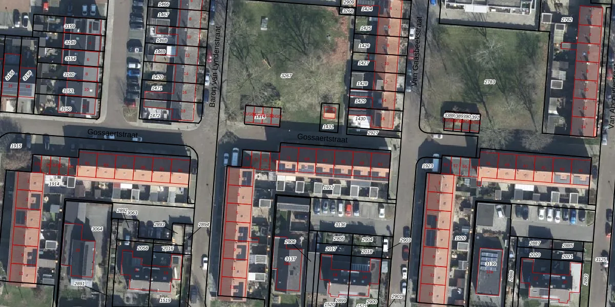 Het perceel waarop Gossaertstraat 69 staat heeft een oppervlakte van 1392 m². Dit is een zeer groot perceel. De perceeloppervlakte wordt geregistreerd door het Kadaster. Gedetailleerde informatie over de maten van dit perceel kunt u vinden in het rapport Kadastrale kaart met maatvoering van Gossaertstraat 69.
