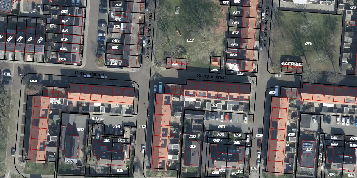 Het perceel waarop Gossaertstraat 75 staat heeft een oppervlakte van 1392 m². Dit is een zeer groot perceel. De perceeloppervlakte wordt geregistreerd door het Kadaster. Gedetailleerde informatie over de maten van dit perceel kunt u vinden in het rapport Kadastrale kaart met maatvoering van Gossaertstraat 75.