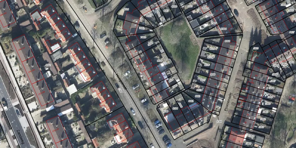 Het perceel waarop Hoogstraat 84 staat heeft een oppervlakte van 557 m². Dit is een groot perceel. De perceeloppervlakte wordt geregistreerd door het Kadaster. Gedetailleerde informatie over de maten van dit perceel kunt u vinden in het rapport Kadastrale kaart met maatvoering van Hoogstraat 84.