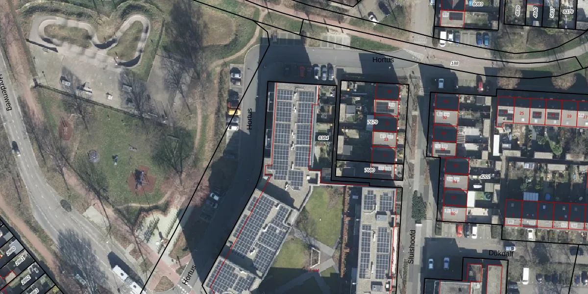 Het perceel waarop Hortus 108 staat heeft een oppervlakte van 4258 m². Dit is een zeer groot perceel. De perceeloppervlakte wordt geregistreerd door het Kadaster. Gedetailleerde informatie over de maten van dit perceel kunt u vinden in het rapport Kadastrale kaart met maatvoering van Hortus 108.